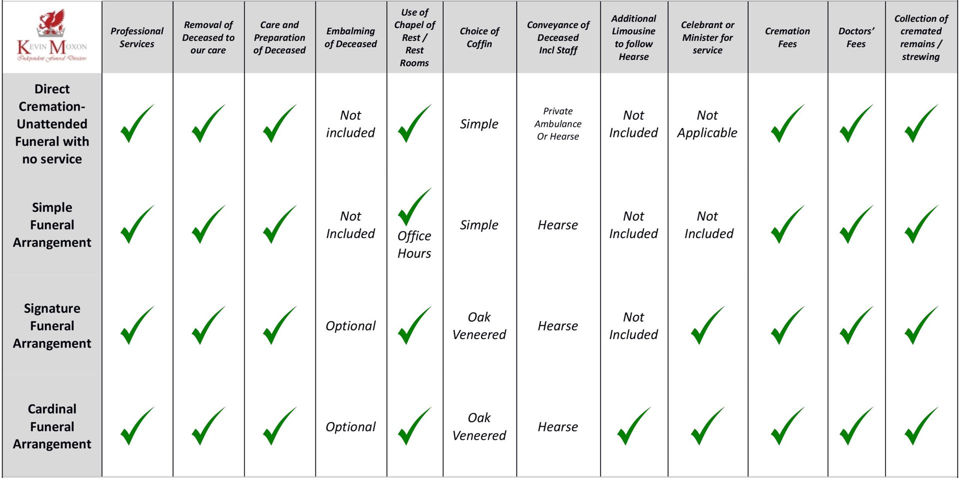 We offer our ‘Cardinal’ Funeral Arrangement.